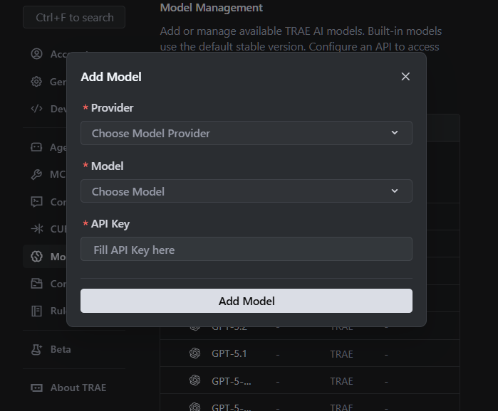 By integrating Aiberm with Trae, you unlock a flexible and powerful coding experience with access to top-tier AI models.